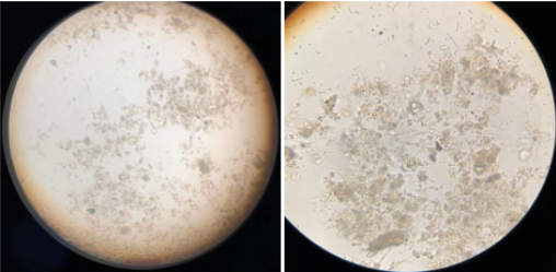 (鏡檢污泥絮體細(xì)碎,可見少量輪蟲及表殼蟲,鐘蟲等原生動(dòng)物較少 )